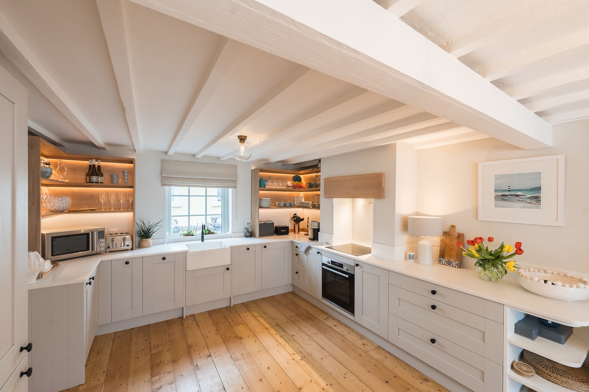享受入住這間精美翻新的19世紀小屋,提供現代化的高品質住宿。 主起居空間採用開放式平面,分為獨立區,配有舒適的座椅、手工建造的廚房和用餐區。 它設備精良,配備了你舒適住宿所需的一切。 雙人房和單人房位於旅居後方。 浴室設有大型步入式電淋浴間。