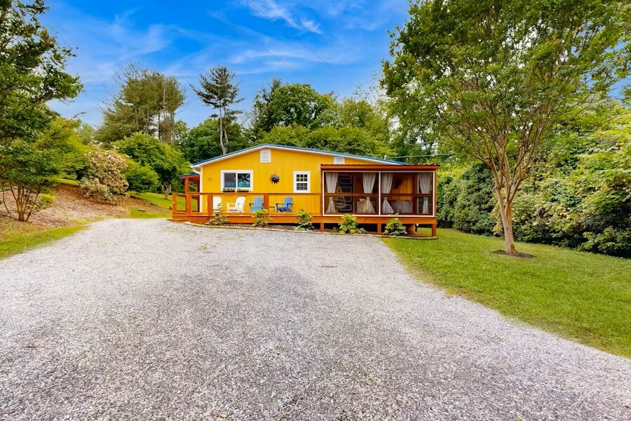 果樹農舍(Fruit Tree Farmhouse)是一個2BR/2BA現代房源,佔地2英畝。 距離市中心18分鐘,距離西阿什維爾15分鐘。 非常適合家庭、朋友和小狗入住,房源內有開花的果樹和灌木。 開放式客廳和廚房。 在探索山脈或參觀比爾特莫爾莊園(Biltmore Estate)一天後,房客可以在這裡聚會。 在門廊或火坑旁享用小烤肉和放鬆時間,欣賞夜空的完美景觀。