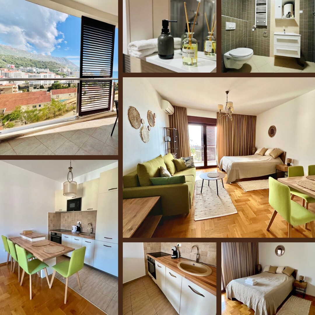 This modern apartment in Becici is only 2,5 km from Budva centre and comes with a lot of light and a beautiful sea view from the terrace, bedroom and living room. You will find all commodities that you need and do not want to miss during your vacation. All the furniture and decoration were carefully chosen and intended to meet the expectations of our guests. There is a big supermarket on the ground floor of the building and you are only 5 minutes walking distance from Becici beach.