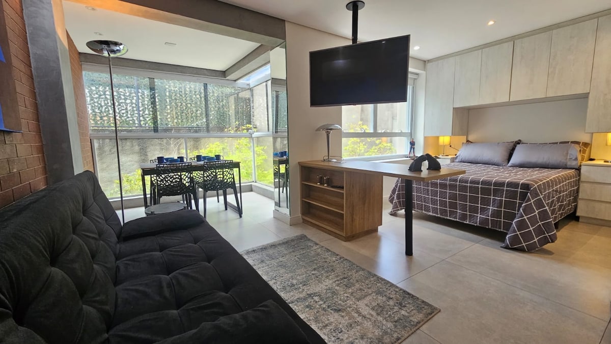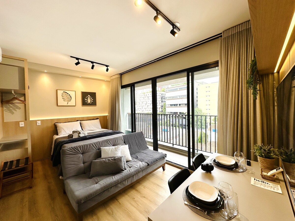 我們全新的單間公寓已準備好在這座城市最受喜愛的街區Vila Madalena接待您。單間公寓裝潢清新現代,廚房、休息室、臥室和浴室均配有餐具和主要家用電器。 該建築於2024年推出,提供所有便利設施,讓您享受愉快的住宿體驗:屋頂游泳池、健身房、洗衣房、自行車架、共同工作空間以及派對和燒烤的美食區。