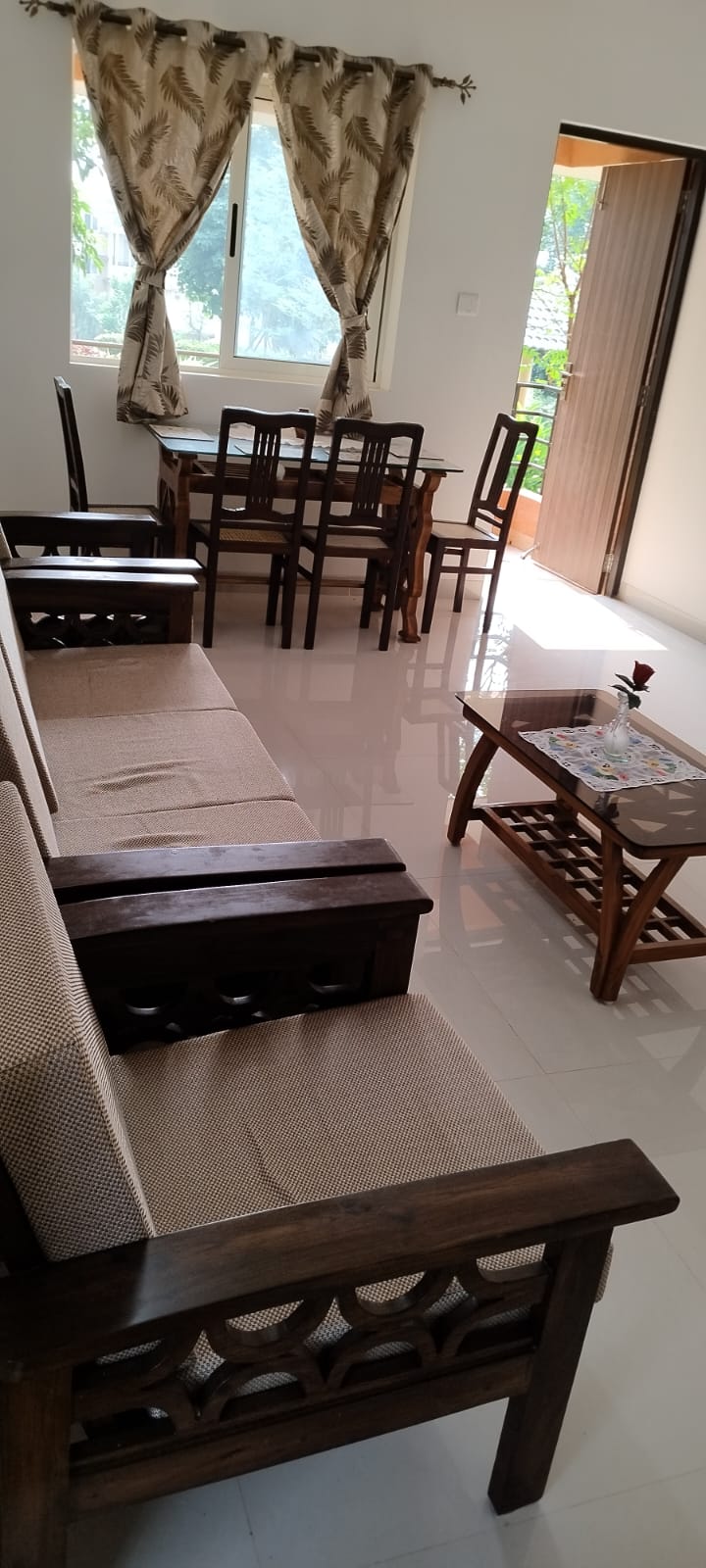 3 BHK,配有2間浴室(1間配有西式馬桶的浴室、1間獨立的印度馬桶和1間獨立的浴室),配有短期和長期住宿所需的所有設備與服務,位置非常安靜。與高速公路連接良好。