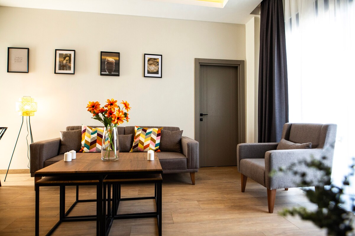 這是我們的1間臥室公寓,客廳和臥室最美麗的海景。 我們提供高速網路。 客廳有沙發,也可以是牀。 -Vera Suites距離Konyaaltı海灘2分鐘路,靠近所有咖啡館和餐廳。 -如有需要,我們可以增加額外牀位。 -我們提供每週免費清潔服務,預訂超過5天。 -我們有24小時的接待處和安保服務。 如有任何要求,您可以隨時與我們聯絡。