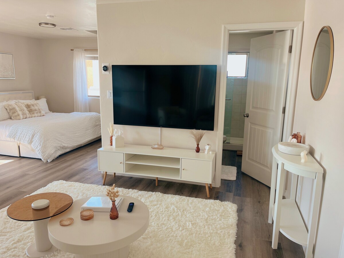 歡迎來到我們迷人的2間臥室、2間浴室房源,配有標準雙人床尺寸的記憶泡綿折疊床墊,坐落在新墨西哥州阿爾伯克基市的繁華市中心以北。無論您是來這裡度週末、探索文化和美食,還是出差,我們的舒適房源都能為您提供完美的度假勝地。感受我們精心設計的房源的溫馨和舒適,配有2間寬敞的臥室、2間浴室和客廳,可舒適容納6位房客。