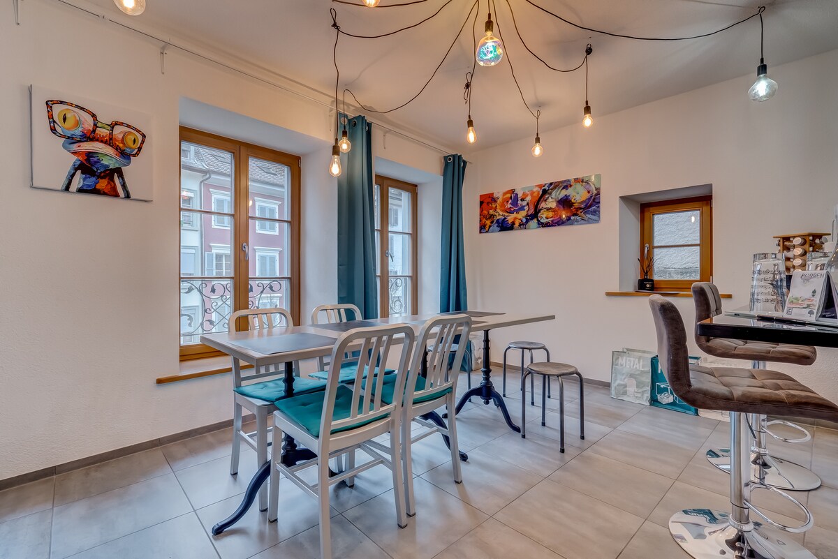135平方米的Loft公寓,位於歷史悠久的房屋內,設有全年無需預約即可使用的私人水療中心和溫水泳池(春季至秋季)。 大型額外休閒區,設有陽台和露台。 適合4位成人+ 2位兒童(最多6人)。 經旅居主人同意,可攜帶小型寵物。 尊重社區。提供床單、茶、咖啡等。 可自行決定和寧靜。 每晚100歐元起,根據季節和住宿時間長短而定的彈性價格。