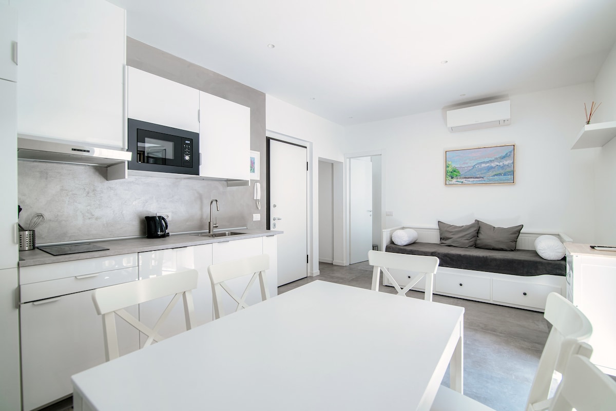 Casavalery, a studio apartment, consists of 1 bathroom with shower and hairdryer, a kitchen, and a living area where there is a sofa bed, a double bed with two bedside tables and a wardrobe. The apartment has independent heating, air conditioning , satellite TV, wi-fi internet, washing machine, outdoor parking, lift, fully equipped kitchen, balcony with magnificent lake view, equipped with table and chairs. Sheets, towels and kitchen linen are included. The tourist tax is 3€ per person per day.