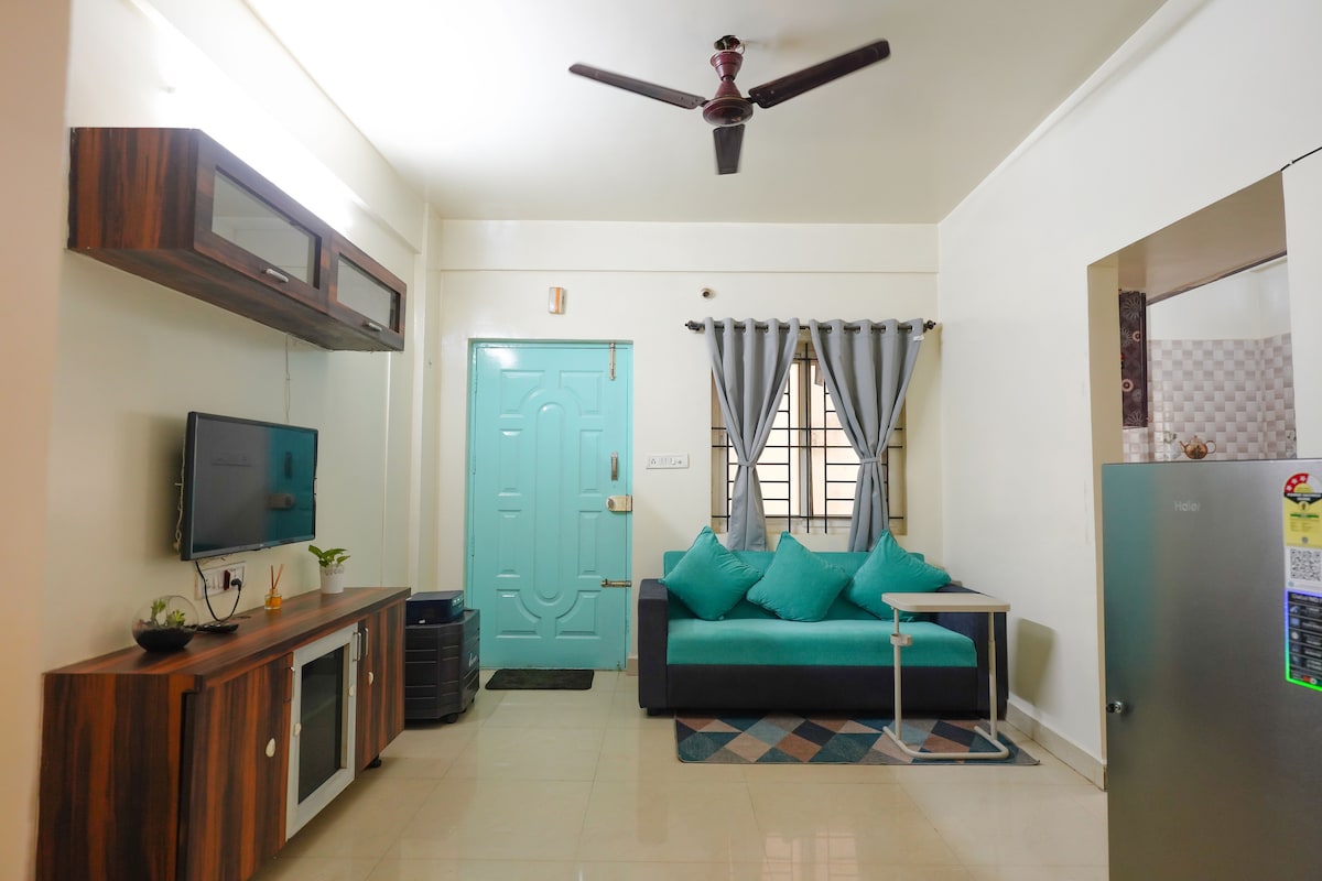 在AECS Layout的中心地帶,體驗工作與放鬆的完美結合。 這間舒適的公寓距離Marathahalli僅1公里,是專業人士參觀Prestige Tech Park、RMZ Ecospace或Embassy Tech Village的理想基地。 無論你是來這裡短期遠程工作或週末度假,你都會喜歡這個安靜、適合情侶的氛圍。 這個空間設有專屬工作空間、高速網絡,以及溫馨的氛圍,讓你在辦公一整天後放鬆身心