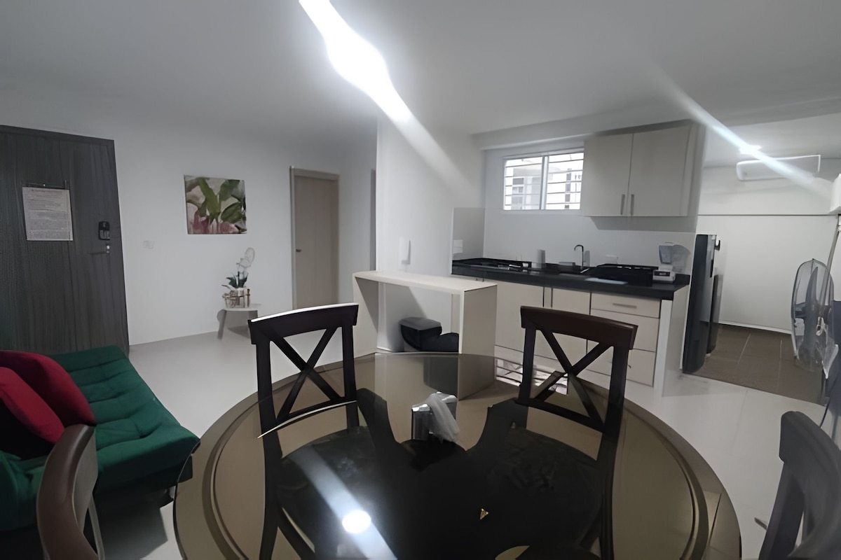 在參觀美麗的卡利市時,感受如家一般的舒適。這是一間豪華套房,配備您享受愉快時光所需的一切,位於安靜的高級社區,非常中心,步行即可抵達Parque del Perro。我們非常關注每一個細節。在這裡,您可以找到全套廚房、1間全套浴室、小型辦公空間,還有熱水可供放鬆淋浴。智慧電視可供娛樂、WiFi等。我們真的希望您能感到賓至如歸!