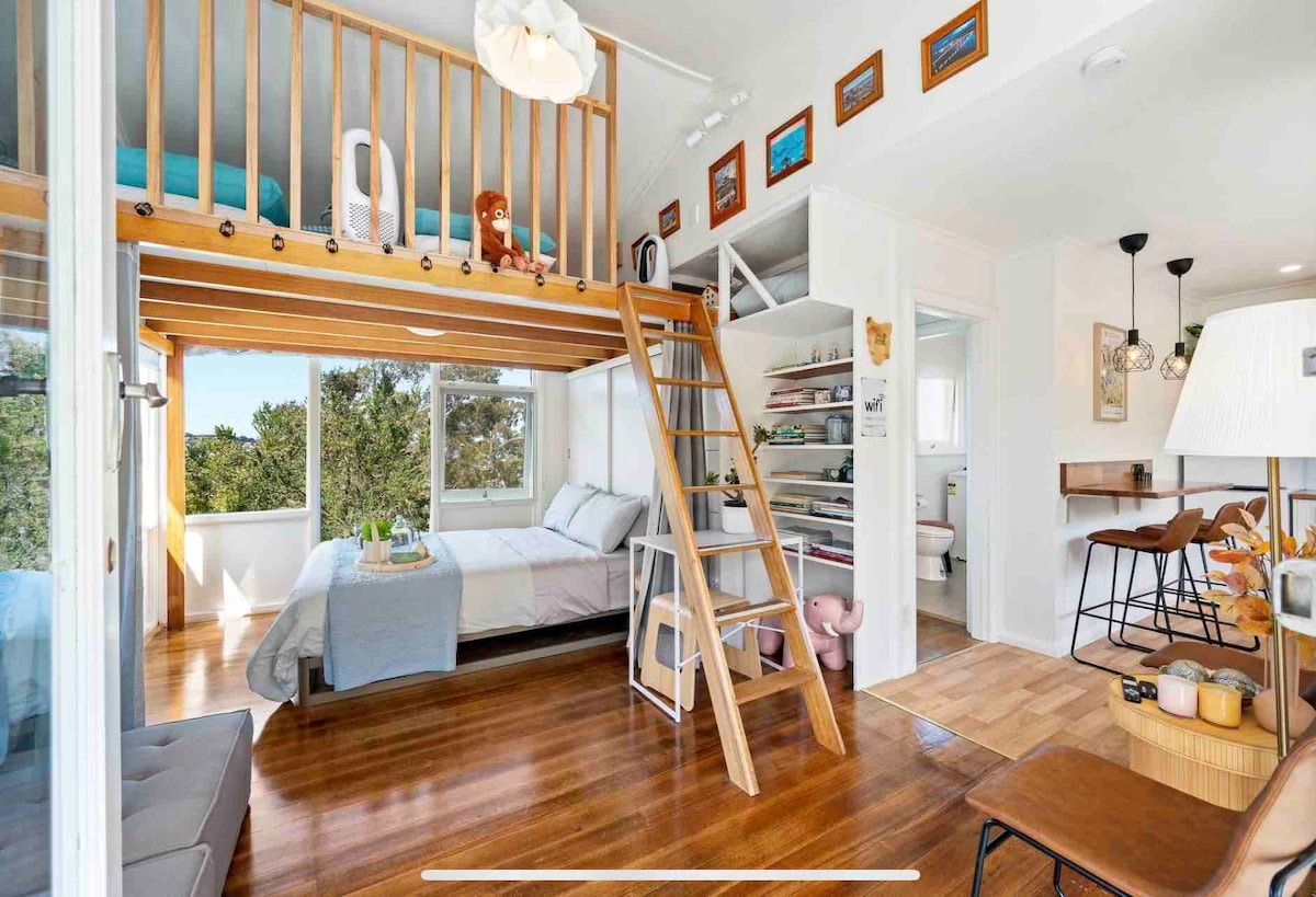 靠近海灘的閣樓,可欣賞水景,距離霍巴特10分鐘