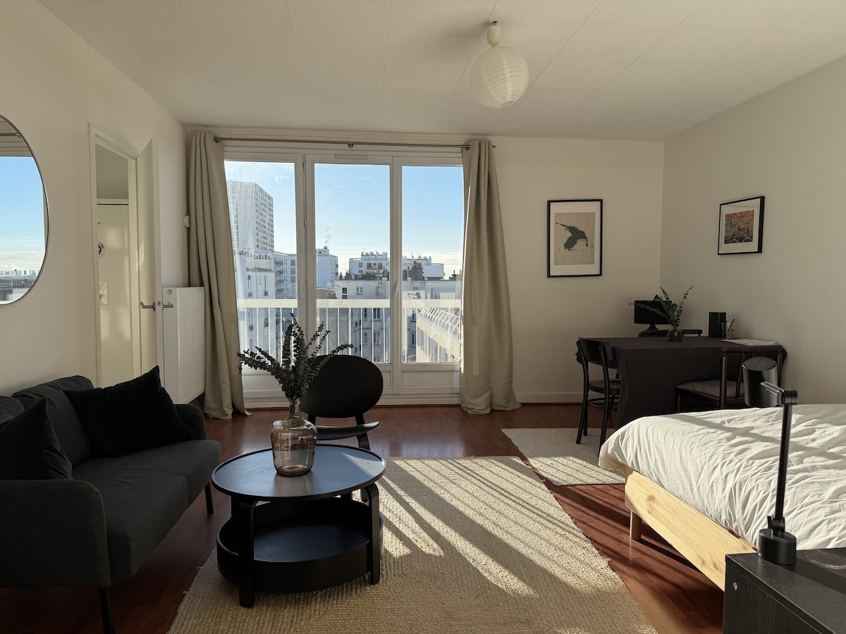 非常安靜明亮的24平方公尺的單間公寓,有3扇窗戶可俯瞰庭院。 熱鬧時尚的街區。 非常靠近巴黎市中心,有很多交通工具。 一間寬敞的房間,配有沙發,可轉換成非常舒適的牀。 設備齊全的小廚房,配有電磁爐、烤箱和冰箱、陶器和小家電。 獨立浴室,配有洗手臺、淋浴間和馬桶。