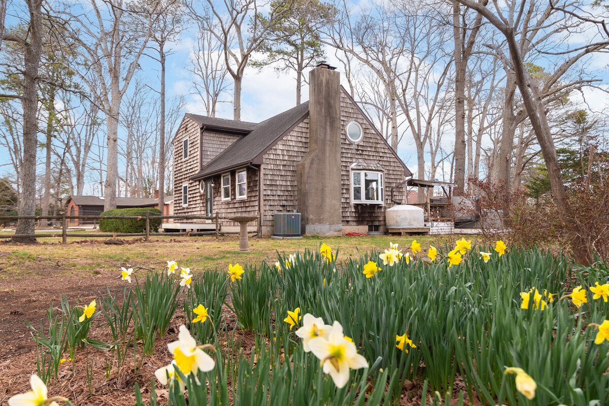 入住這間獨特的房源,沉浸於大自然美妙的樂曲之中。距離路易斯市中心和特拉華海灘不到5英里。小屋客用住房坐落在樹林中,毗鄰一棟樹屋,可俯瞰寧靜的池塘,噴泉聲音平靜。在主要房源,房客可以使用地面泳池(季節性),配有60英尺長的泳道和滑梯,與房東安排時間。後院還包括有機花園、遊樂場和🐔雞。