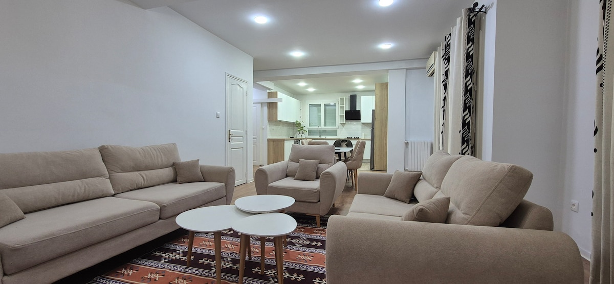 Découvrez notre appartement spacieux , parfait pour les familles ou groupes d’amis. Il comprend une grande chambre avec un lit double confortable, dressing, une chambre/salon avec deux matelas, un salon lumineux avec coin repas, une cuisine entièrement équipée, deux salles de bain, et une cour extérieure avec table et chaises. Profitez d’une très jolie vue depuis l’appartement, idéale pour des moments de détente. Profitez d’un séjour confortable et pratique Un séjour inoubliable vous attend❤️