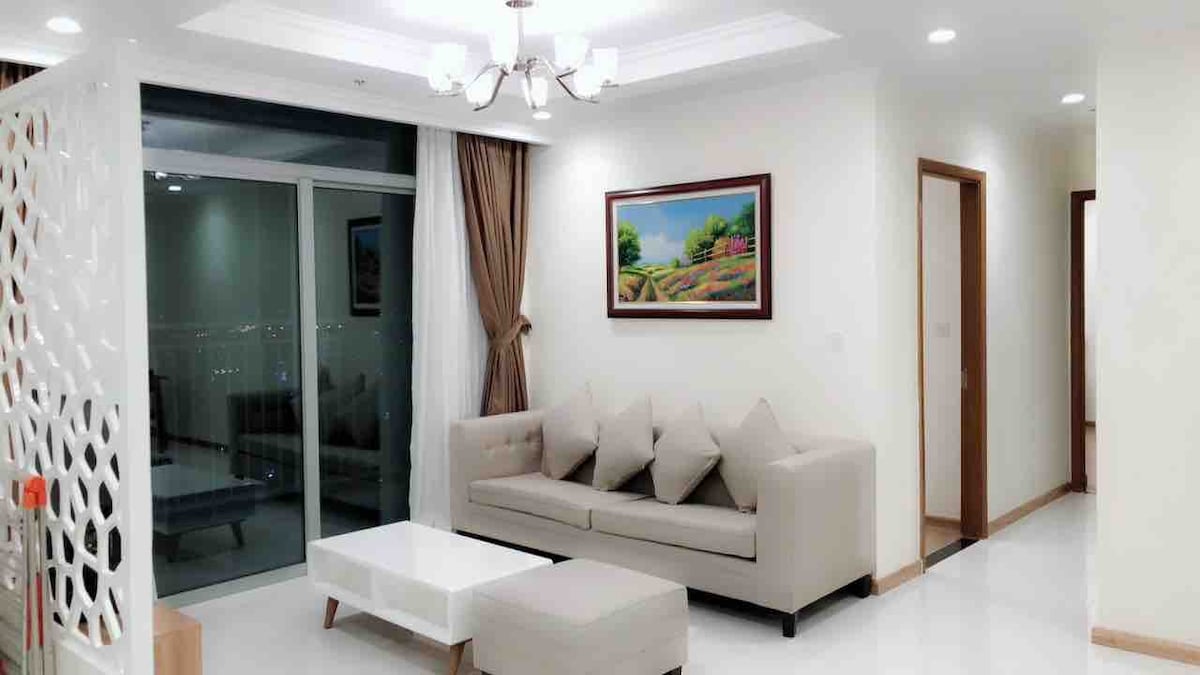 歡迎來到你的都市綠洲! 在我們位於日本城的寬敞陽臺的2人單臥室公寓中放鬆身心,距離胡志明市中心僅5分鐘路程。 步行1-200公尺內有餐廳、酒吧、咖啡館、按摩店和便利商店。 在三樓,您的日本天堂有全套設備與服務。 沒有電梯,但寬敞而平緩的樓梯是免費的鍛煉! 💪 享受電影之夜的100英寸投影機、舒適的1.8公尺沙發、設備齊全的廚房和清爽的浴室。