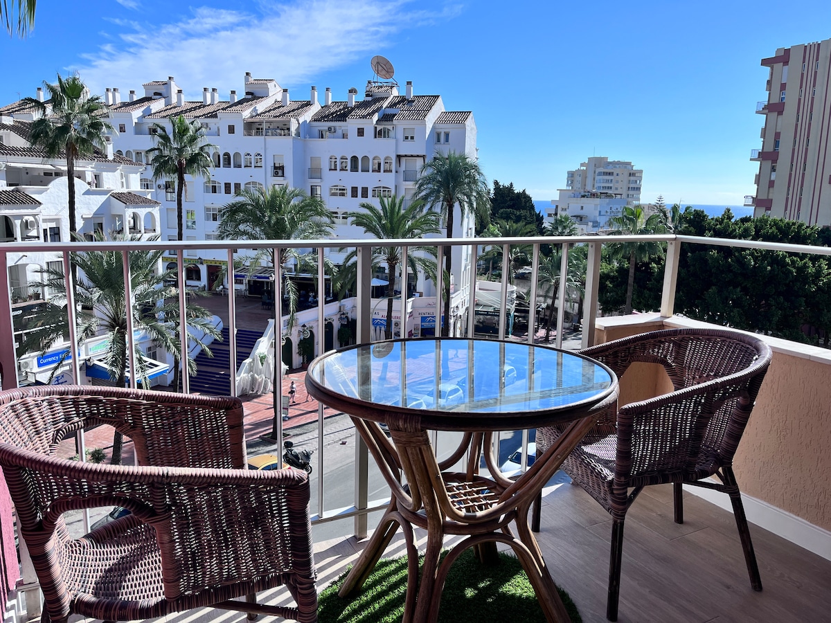 美麗的海濱單間公寓,景觀迷人。 一個安靜的單間公寓,您可以聽著海浪入睡,在牀上讀一本書,欣賞美麗的景色,或觀賞日落。 步行兩分鐘即可抵達Puerto Marina ,在那裡您可以找到各種酒吧、餐廳、商店、商店…… 享受Benalmádena最好的海灘「Malapesquera」,距離公寓僅兩步之遙。 步行幾分鐘即可抵達超市、銀行、計程車和巴士站。