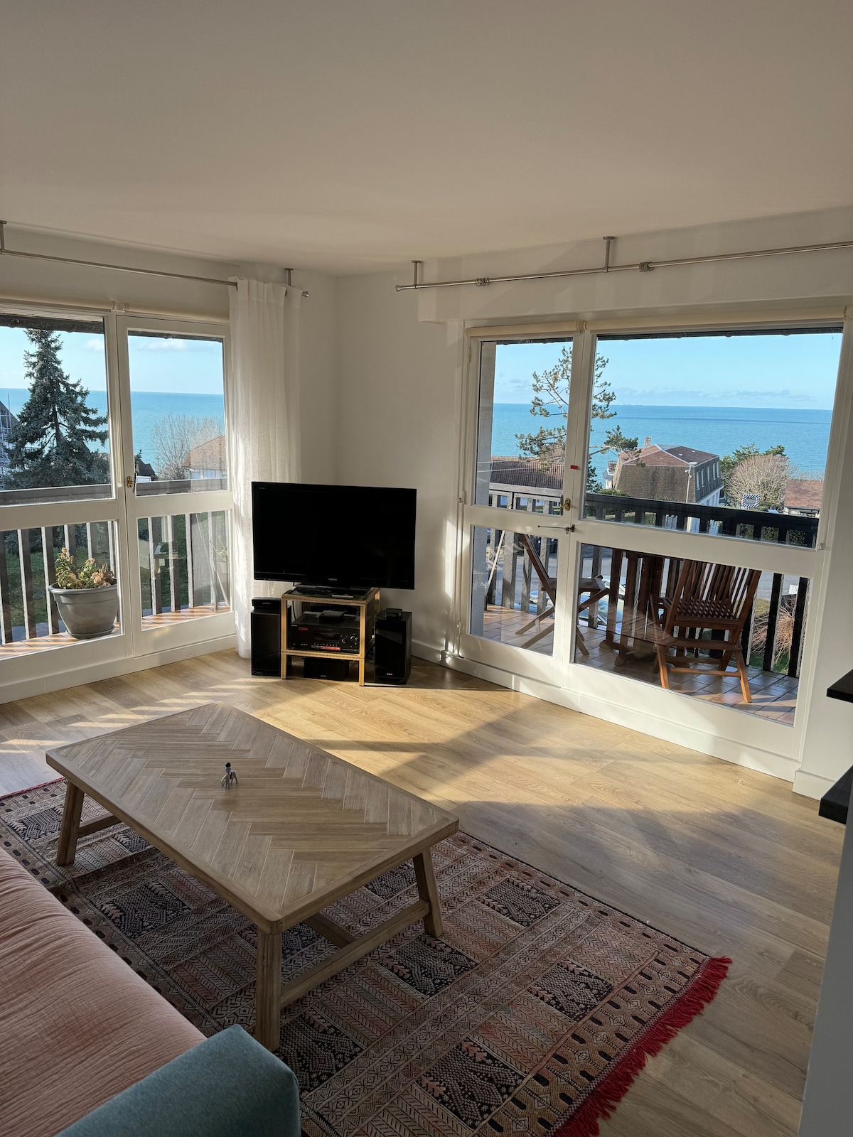 在這間美麗、安靜和明亮的公寓中,享受海邊的放鬆住宿。 您將有一間通往設備齊全的廚房的大客廳、一間配有加大雙人牀的臥室、海景。 休息室光線充足,配有一張大沙發牀,可容納2人。 位於三樓,有電梯。 步行8分鐘即可抵達海邊,距離多維爾市中心4公裏,距離特魯維爾市中心5公裏。 住宅前面有免費停車位。