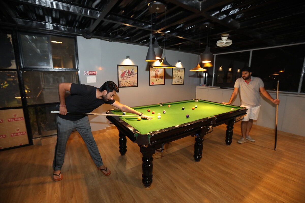 1 間臥室(雙人床)+附設私人浴室。 獨立客廳、專用工作空間和小廚房。 這間時尚的雙人套房坐落在充滿活力的Koramangala 4區,讓您體驗最優質的精簡奢華。非常適合獨自遠距工作的人或尋求城市度假的情侶。這個空間結合了舒適、便利和優越的地理位置。距離時尚咖啡廳、餐廳、酒吧和Koramangala的所有活動僅幾步之遙,您位於一切的中心。