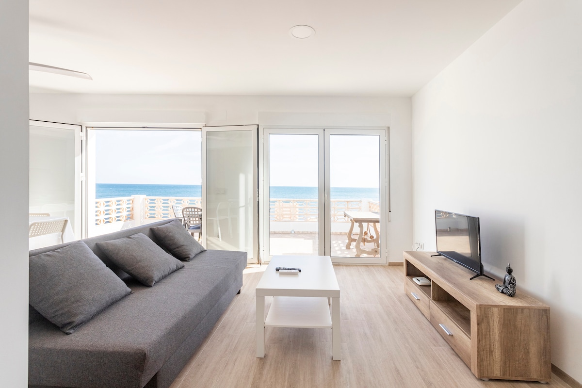 海濱頂層公寓,可容納6人。 套房配有雙人牀、浴室和衣櫃。 兩間臥室,每間配有單人牀,共用浴室。 它有一個設備齊全的廚房和客廳,可俯瞰寬敞的露臺,可直接欣賞海景。 頂樓公寓有大窗戶,全天自然光線充足。 此外,它還有1個車庫空間,直達海灘。 我們使用臭氧機消毒。