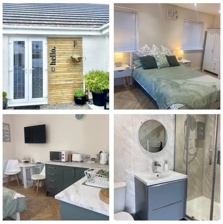 A Peaceful and spacious self contained annex just 1km away from the heart of Benllech village. Walking distance of the beach and amenities whilst being far enough away to be a peaceful retreat. Fully renovated with a spacious living area and outside garden, luxury bathroom and modern kitchen. One bedroom with a comfortable double bed, additional bed is a double pull out sofa bed. An ideal property for parents and 2 children, could also be used for 4 adults.