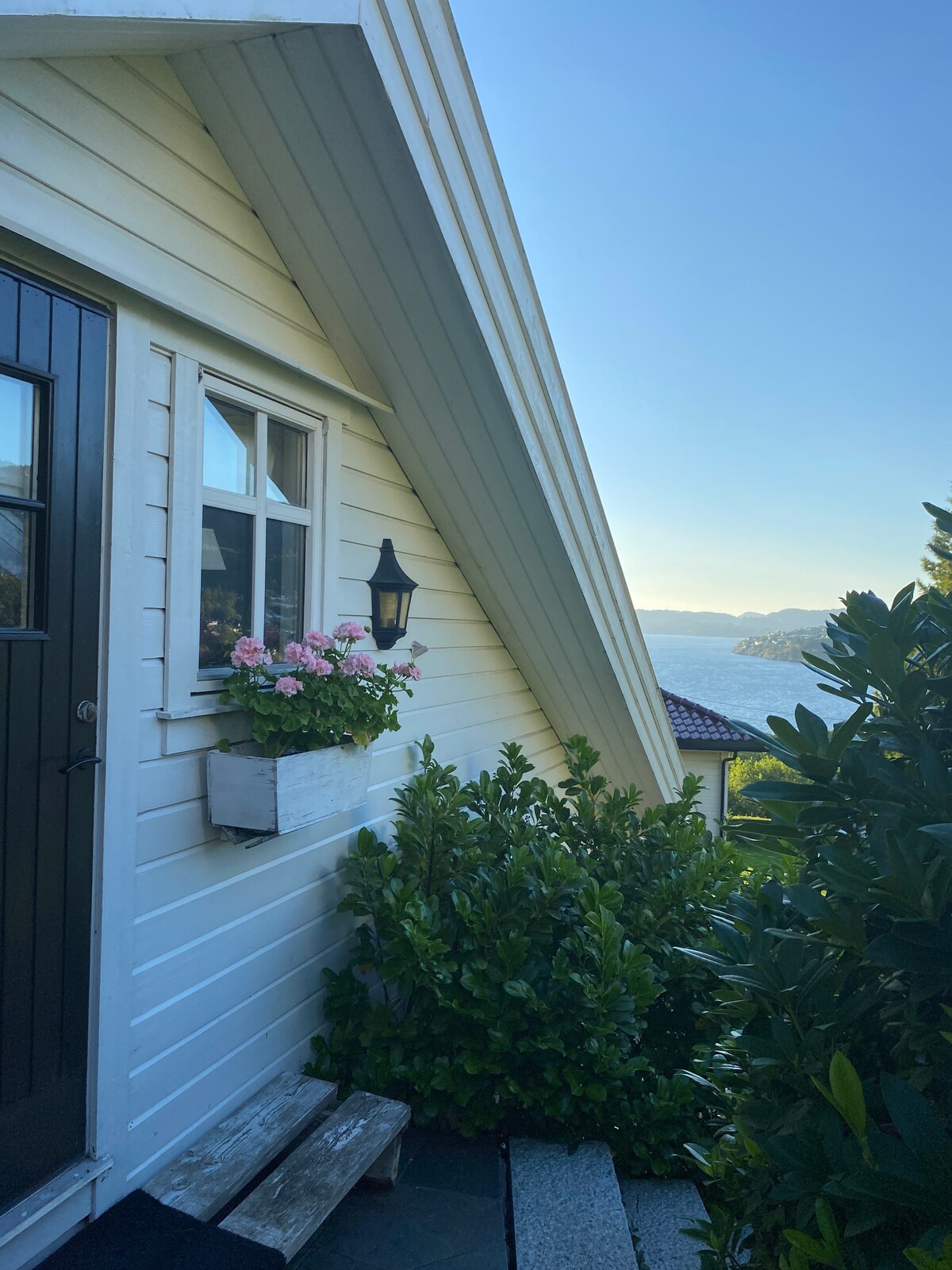 Home with a fantastic sea views. Sunny location and secluded garden in a quiet residential area. Own entrance. 5 min walk to the bus transport. Center 5 minutes away by car. 10 min to Bergen City by car. 10 min drive from airport. Free parking for 1 car/motorcycle only. The property is in a quiet area. The property is located approx. 150 meters from the sea. Sunny location. Short distance to beautiful nature experiences. All furniture placed on the part is for free use.