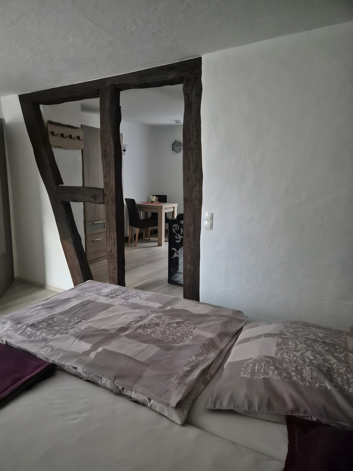 小型兩層度假屋。 一樓有自行車停放處。通過外部樓梯可到達一樓的公寓。 它被分成一個帶小廚房的客廳用餐區和一個帶寬敞淋浴間的浴室。 睡覺時,您可以通過室內樓梯前往開放式閣樓,那裡有一張 1.60 公尺寬的床等著您。 如果您是四人入住,沙發可以展開成一張全尺寸的雙人床。