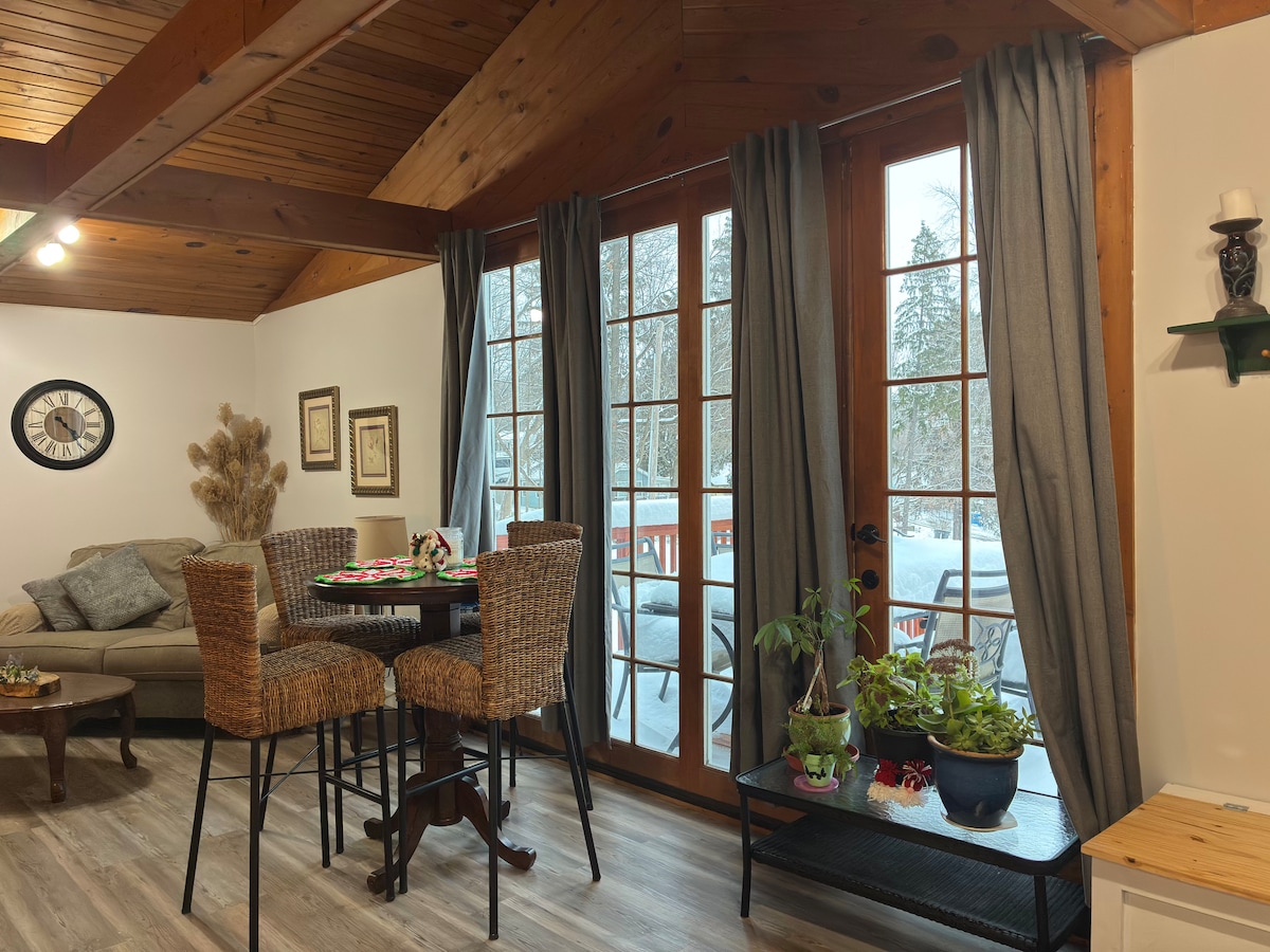 歡迎來到清澈湖上的日出小屋! 這個20世紀60年代的迷人設有鬆木牆、拱形天花板、舒適的燃木壁爐和設備齊全的餐廳廚房。 配有兩間大床房、淋浴間和石灰石露台,配有燃氣烤架和火坑,是情侶、小家庭和帶上狗狗的完美度假勝地! 冬天的時候,這裏會變成一個神奇的仙境,非常適合在溫馨的壁爐旁度過夜晚,或在雪地中探險。 放鬆、探索,留下難忘的回憶!