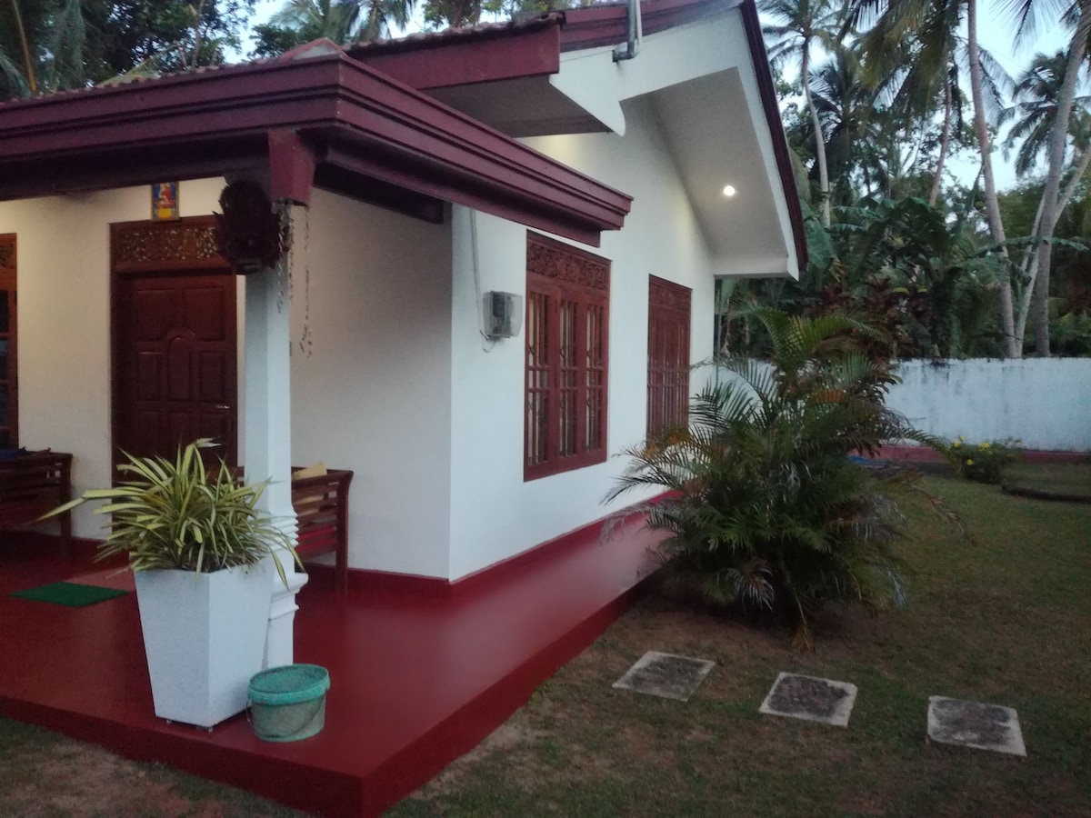 Name : Galle Vacation Located very close to historic Galle town, Dutch Fort and beach, a lovely traditional family 1 bedroom house beautifully restored set in a tropical garden. 3.4km to beach 1km to Thomas college 2.9km to Galle international college 3.1km to German-SriLanka Friendship Hospital for Women 3.4km to Karapitiya teaching hospital 4km to Galle Town 300m to SOS children's village &gym. 500m to supermarket With Air Conditioning+1300SLR/ night (around 3-4 USD)