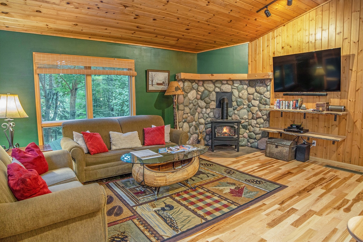 在距離水晶山(Crystal Mountain)僅幾分鐘路程的舒適小屋中體驗密歇根州北部的春天。 您可以在風景優美的步道上徒步旅行、打高爾夫球、騎單車或探索附近的湖泊和迷人的小鎮,然後在2.5英畝的寧靜環境中放鬆身心,四周環繞著寧靜的松樹。 在戶外營火旁享受夜晚時光,呼吸清新空氣,以及時尚舒適的室內設計,讓你放鬆身心。 探險和重新開始的完美春季假期。