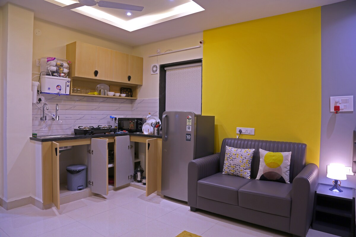 Gachibowli的現代1BHK —距離美國領事館僅1.8公里,距離金融區辦公室( Amazon、Microsoft、Wipro )僅7分鐘。 非常適合領事館訪客、商務旅客和搬遷人士。 包括智能鎖自助入住、100 Mbps Wi-Fi、空調、備用電源、陽台、洗衣機和清潔服務。 靠近許多咖啡店和餐廳。 你在海得拉巴的高效舒適的家。 需要附有相📌片的身分證件。立即預訂!