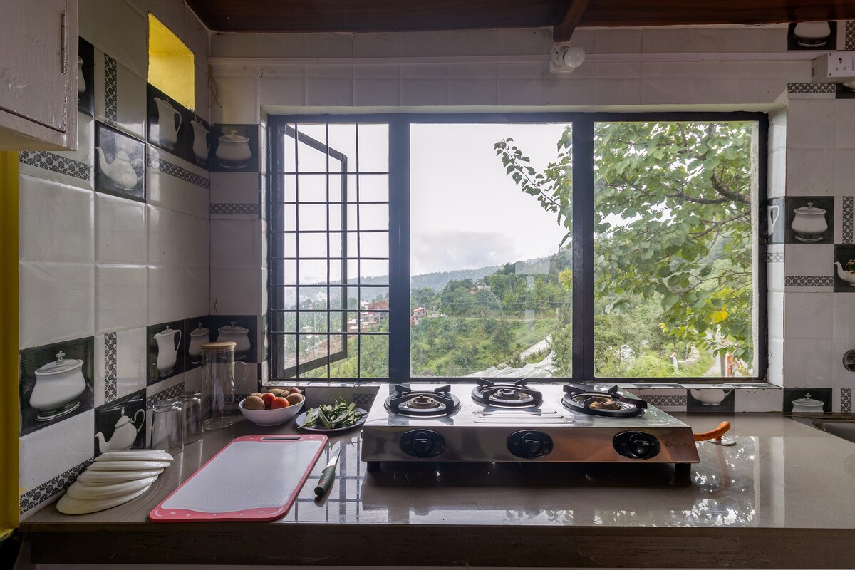 2BHK木屋|廚房、陽台、喜馬拉雅山