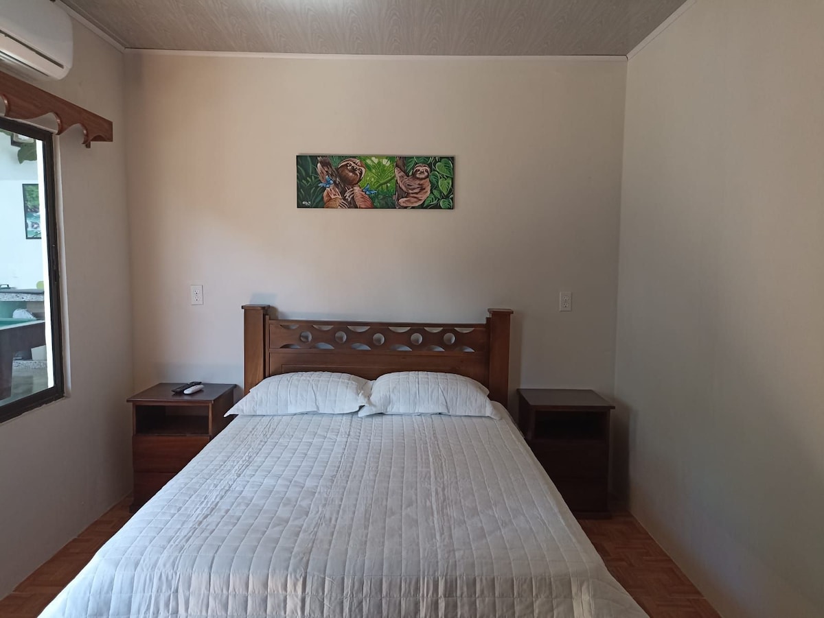 Casa veranera El Mono es un alojamiento tranquilos y cómodos. esta equipado con baño privado, para 4 personas con A/C, tv, WIFI, con área común para jugar billar, descansar o leer e incluye un parqueo privado para.2 carros medianos dentro de las instalaciones, a solo 50 metros cuentas con un restaurante y un supermercado, nos ubicamos a 4 km del parque nacional Manuel Antonio y la playa, te brindamos limpieza a la habitación y facilidad de información y tours en el área