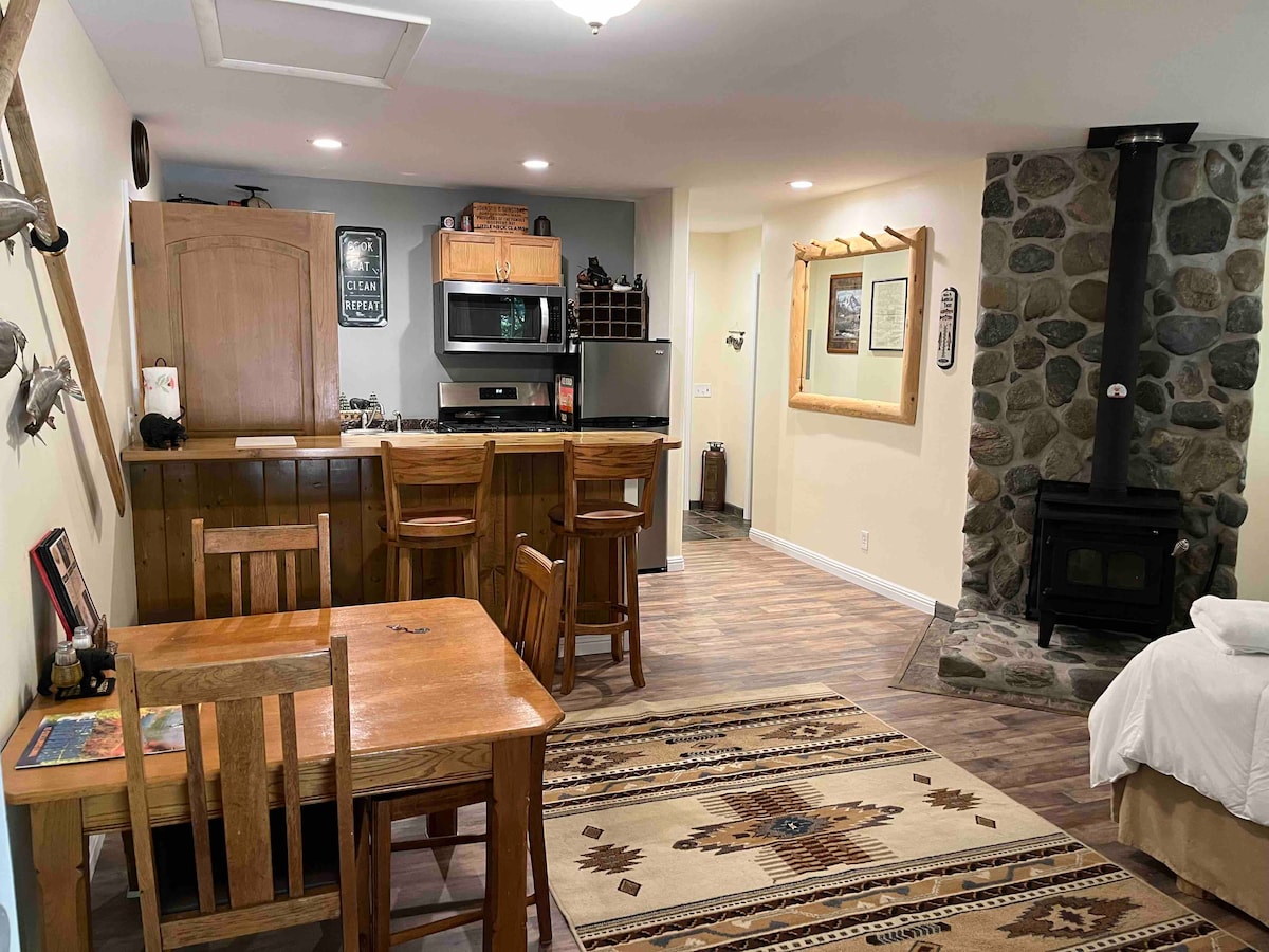 Relax in the outskirts of old town Weaverville at this peaceful rental in town. Close to the hospital and within walking distance to historic downtown Weaverville. Super comfortable King size bed with a 3 inch memory foam topper. Efficient wall heater and a/c. Newly remodeled bathroom. Tastefully decorated. Kayaks available on site, just bring your own tie downs. Outdoor patio area and lounge chair.