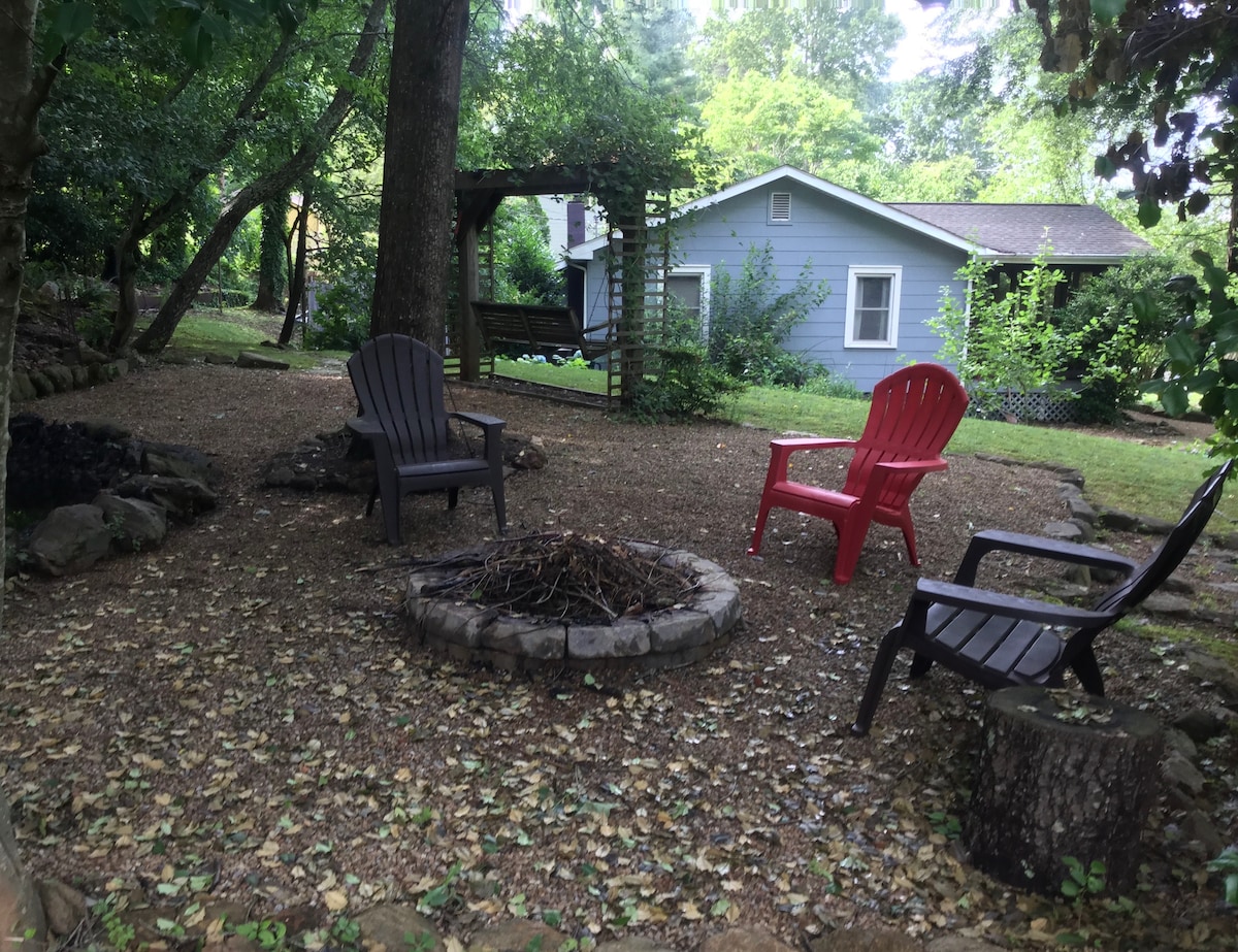 私密且靠近市中心! 您可以快速前往阿什維爾市中心( 2英裏/8分鐘) ,同時坐落在Woodfin Cottage的樹林中。 這間裝潢雅緻的小屋最多可供4位房客舒適入住,有2間臥室和2間浴室。 在甲板上的瓦斯火坑旁享用晨間咖啡或傍晚的日落。 還設有設備精良的廚房和瓦斯烤架。 靠近市中心和州際公路,因此有交通噪音。 預訂房客的最低年齡為25歲