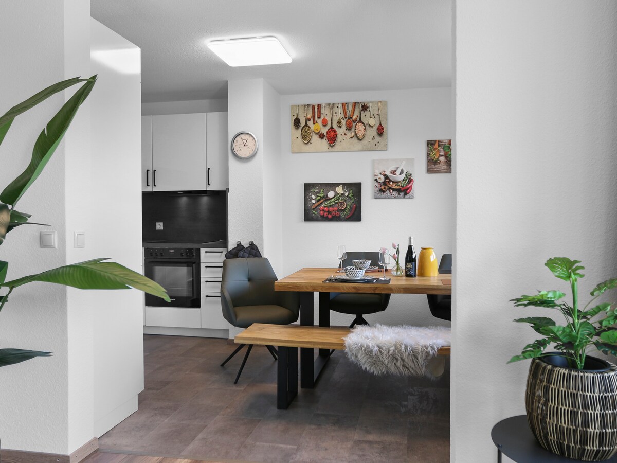 歡迎來到這間105平方公尺的現代舒適公寓,靠近市中心和萊茵河畔。萊茵河畔賓根的頂級中心位置。提供難忘住宿體驗的一切: → 兩張雙人床(180/140x200 ) → 沙發床,可供第 5 位和第 6 位房客使用 → 智慧電視和NETFLIX、Disney +和Amazon Prime影片 → NESPRESSO 咖啡機 → 廚房 → 停車證 → 步行即可抵達火車站、萊茵河畔、市中心、餐廳和超市