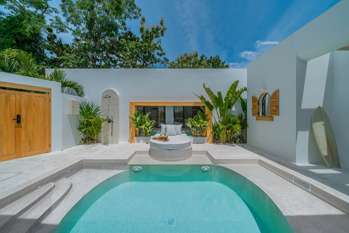 位於賓艮的私人設計師別墅,配備泳池,非常適合情侶和特別的住宿體驗。 一個溫馨、設計精美的空間,既有家的溫馨,又能提供獨特的巴厘島體驗。 開放式客廳與您的私人花園和泳池相通,非常適合在悠長的早晨、日落時分和輕鬆的晚上享受時光。 非常適合浪漫度假,享有完全的私隱。 維護專業,細節一絲不苟。 包括特大床、Wi-Fi、智能電視和泊車位。 鄰近賓艮海灘(Bingin Beach)、一流咖啡館和餐廳