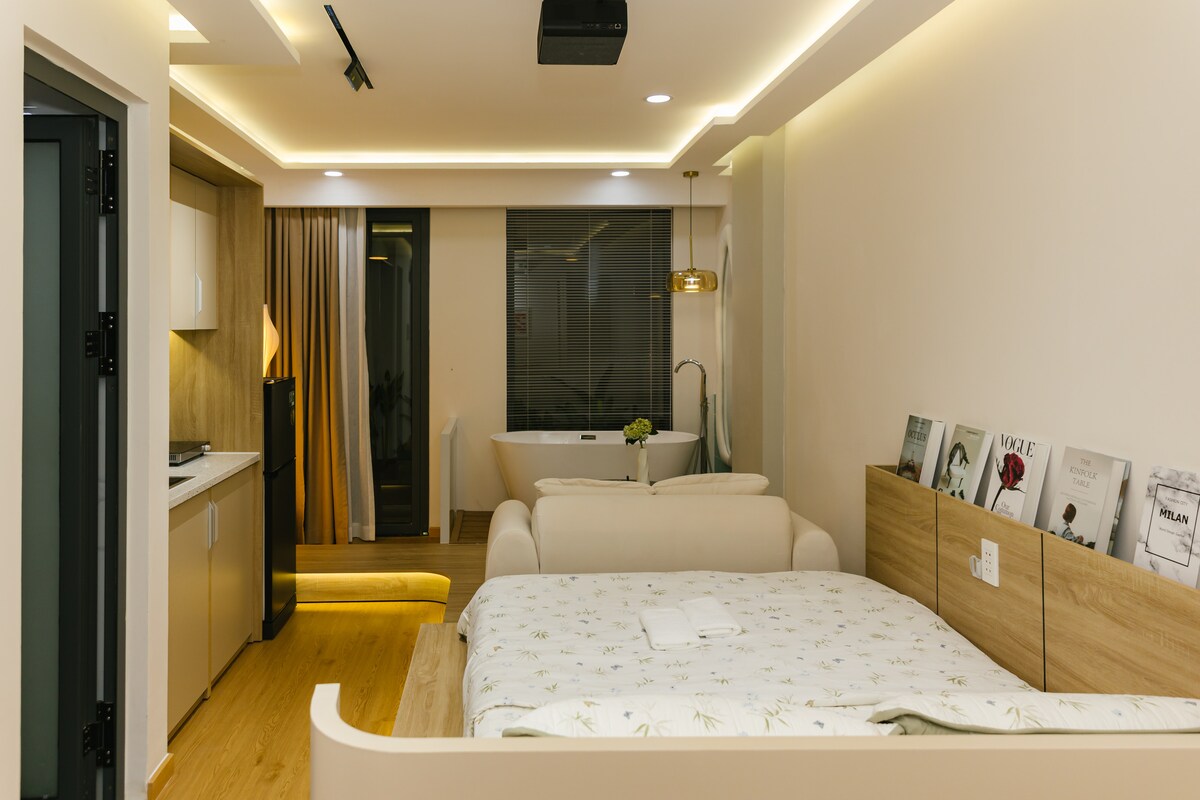 -位於Mia Saigon-Boutique Hotel旁邊的河邊 -家具齊全的單間公寓:冰箱、微波爐、炊具、全套盤子 -24/7安全 -由電子卡控制 -寵物友善 -燒烤場所、泳池、健身房(2025年8月1日開放) -每週1次房間清潔 -長期住宿( 7天及以上)需支付水費 -免費:摩託車停車位、網路、洗衣機和烘乾機使用 -浴室在房間外 -提供收費停車場