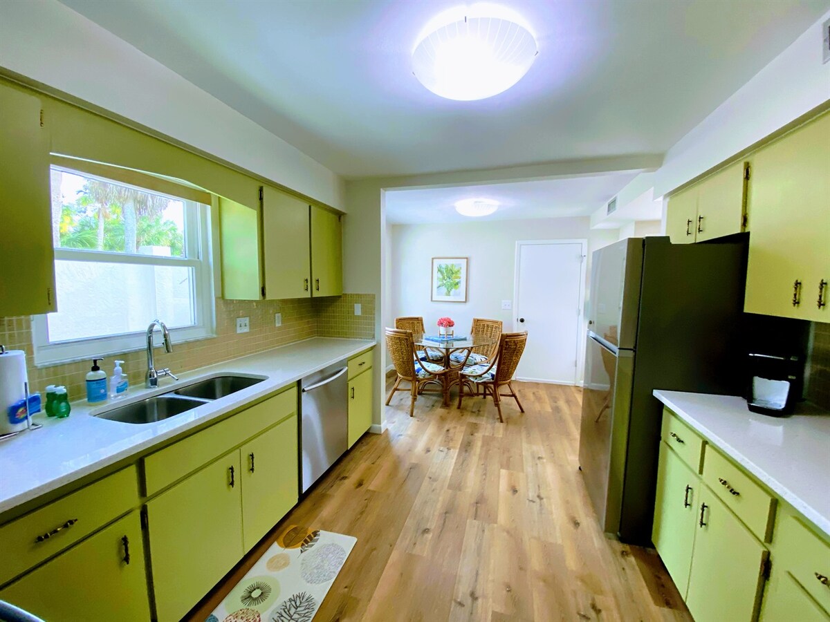 Welcome to our cute, spacious, sun filled and newly renovated Beach Villa. A Happy place for sandy feet, friends, and family. The Villa is located 1 block away from world famous Lido Beach, a 7 min walk to St Armand's Circle, and a short 3 mile drive to grocery shopping & the excitement of downtown Sarasota. The 2 bdr villa comfortably sleeps up to 6 people and features a private outdoor patio, spacious dining area, in-unit washer/dryer & dedicated parking. Come enjoy a taste of paradise!
