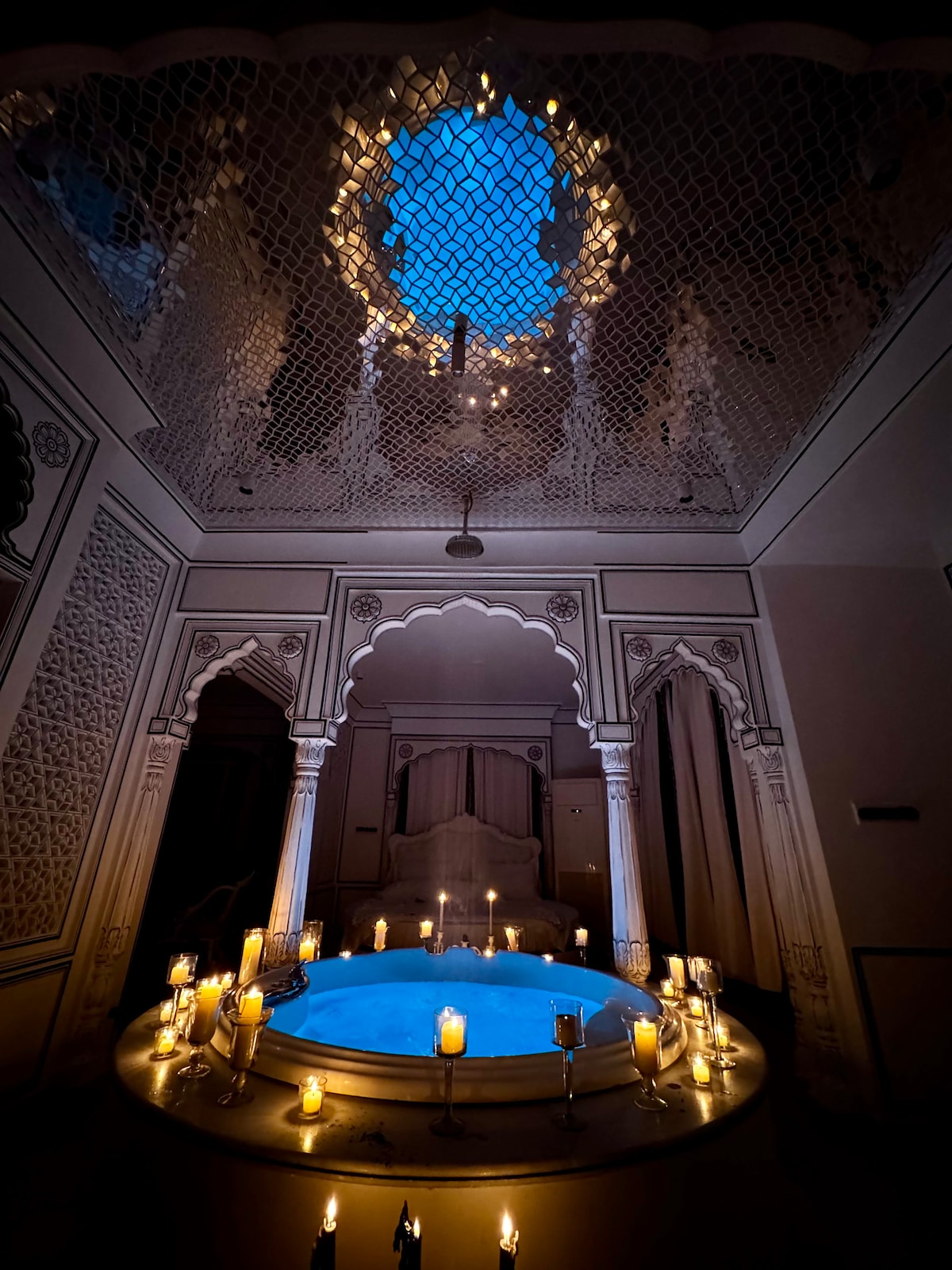 走進Lalluji Luxe公主套房,感受如同置身於活生生的素描本之中。 這間單色調的套房經過重新設計,成為2D Sheesh Mahal,擁有手繪牆壁和正宗的Tikari鏡面工藝。 在「Sheesh Mahal」天花板下的按摩浴缸中放鬆身心,讓現實消失。 在家中享用地道家常菜,並在藝術陽台上放鬆身心。 在Lalluji Luxe,你不只是入住,更是成為傑作的一部分。