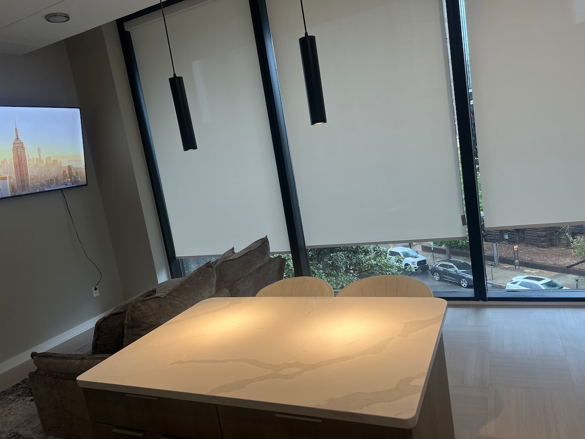 這間時尚的1BR/1BA公寓配備兩臺60吋平面電視、豪華加大雙人床和豪華玻璃淋浴間,讓您享受現代舒適。 旅居內設有洗衣機/烘乾機,讓你保持清新,並可在免費咖啡和茶吧開始新的一天。 廚房島配有吧凳,非常適合用餐或工作。 這個空間專為放鬆和便利而設計,是任何旅客的完美度假勝地。