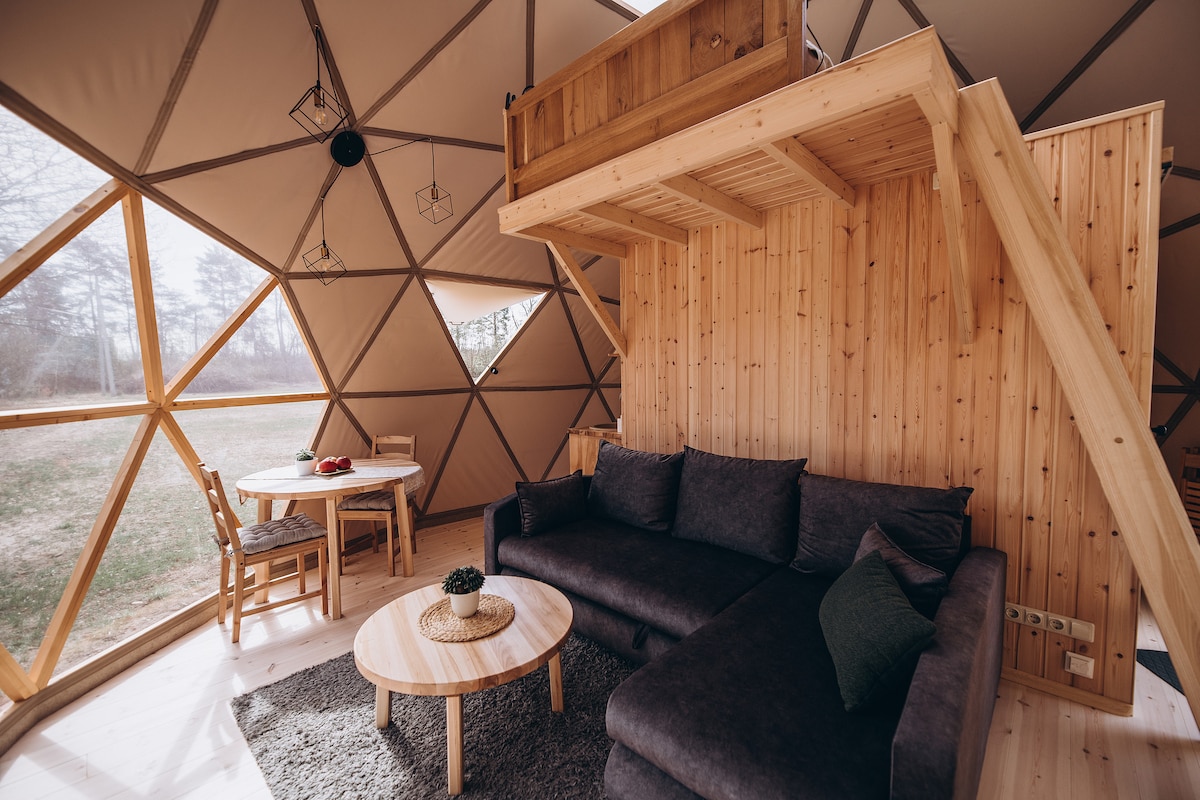 一個被森林環繞的營地,有兩個泉水池塘、設有爐具的溫馨小屋、桑拿和露天按摩浴缸。 沒有電,只有平靜、大自然和安寧。 網站提供燃氣爐、火坑、大鍋和舒適的睡眠空間。 可選的養蜂體驗包括當地蜂蜜紀念品。 對於那些尋求遠離日常生活和城市噪音的自然度假勝地的人來說,這是一個完美的度假勝地。 桑拿和熱水浴缸訂單是分開的。