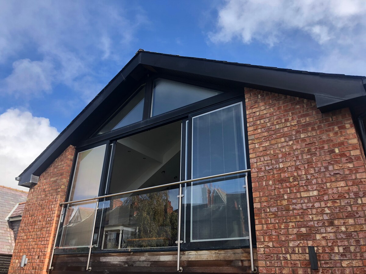 獨家海景頂樓 Loft 公寓 客製化設計的頂層公寓、海景、公園景觀、陽台、木柴、200 吋電影院。 布萊克浦的高級閣樓式行政公寓。從休息室/陽臺可欣賞無間斷的海景和公園景緻。設計師廚房和浴室,配有步入式水療淋浴。全環繞音效 200 吋電影院體驗。真正的原木火爐和木地板,帶給您獨特的閣樓體驗。 無限 5GWifi、無鑰匙鎖、中央暖氣和電動車充電點。