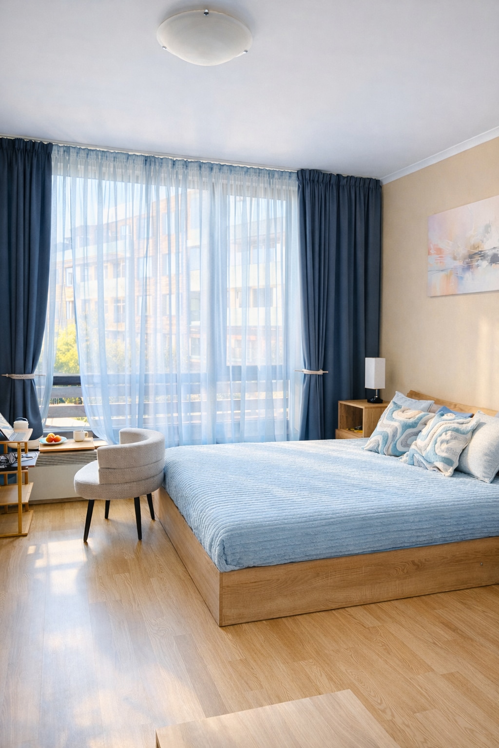 我們的全新公寓於2025年5月全面翻新,讓你體驗全面的舒適與寧靜。 公寓設有寬敞的客廳,配有舒適的梳化床、餐桌和可免費收看Netflix、HBO MAX的電視,以及WiFi。 廚房包括咖啡機、電熱水壺、雪櫃、洗碗碟機、焗爐、爐具和所有基本廚具。 睡房提供180x200厘米的大床,並可通往第二個露台。