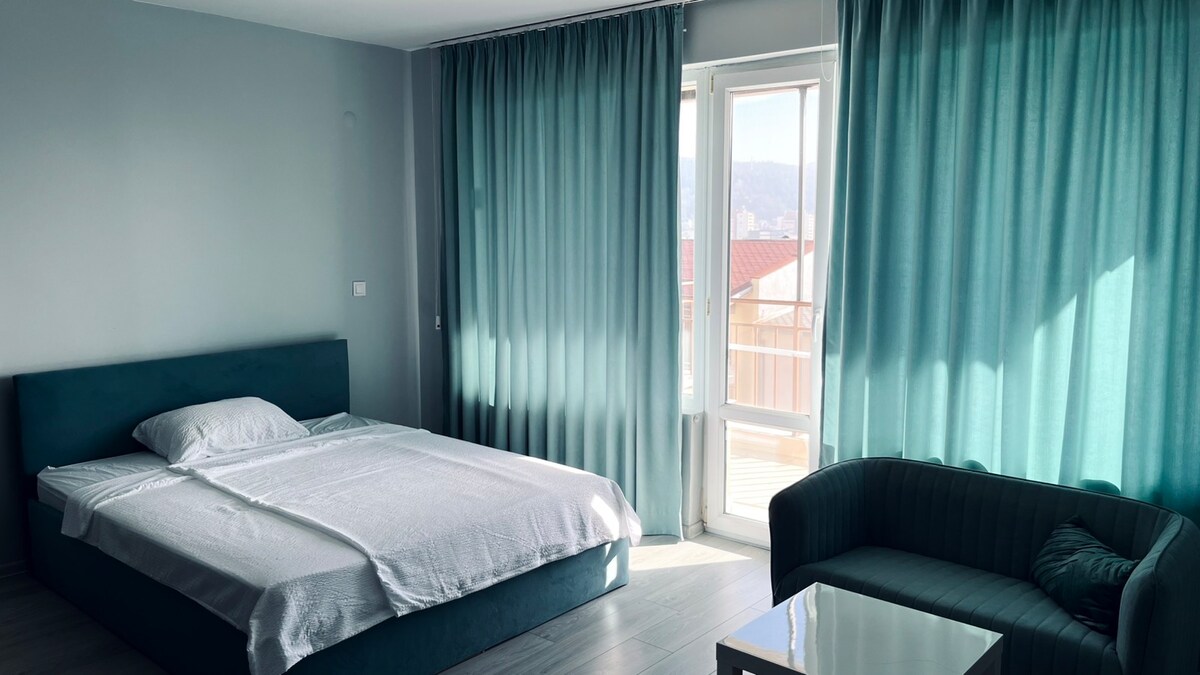 Enjoy a stylish experience at this centrally-located place, situated only meters away from the best restaurant and shopping scene and only a few hundred meters away from the American University in Bulgaria campus. It has all necessary facilities for a productive working environment or a relaxed get away. Situated in a new building with a lift, the apartment offers high speed internet, comfortable bed, stylish setting, washer & dryer and large terrace overlooking the Rila hills.