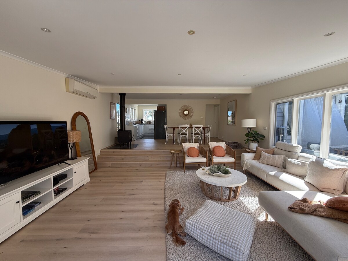 入住這個寧靜、私密和時尚的空間,放鬆身心。 享受壁爐(自備木材),步行15分鐘即可抵達海灘,開車即可抵達溫泉。 加大雙人床、65英寸電視配備AirPlay音響系統、高壓淋浴、配備咖啡機和洗碗機的廚房、室外燒烤。 如果日期不可預訂,請查看我們附近的其他旅居:https://www.airbnb.com/l/n0oL6D8z 注意:車道尚未鋪設,幾個花園床仍需填充,不會影響您的住宿。
