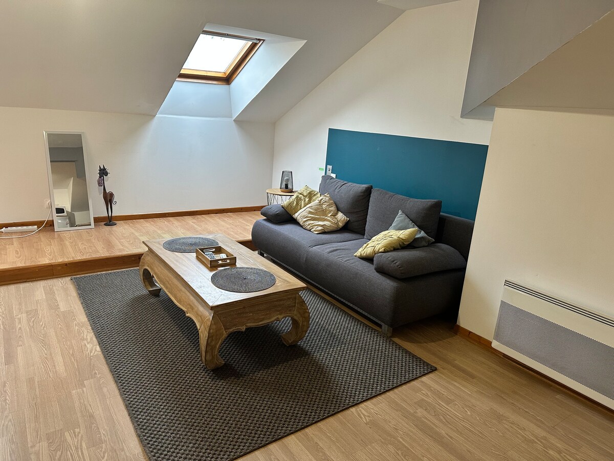 在一棟大型Melusine房屋中愉快的單間公寓,充滿魅力。 你的房間陽光充足,並可俯瞰美麗的花園。 在您的獨立浴室和小廚房中,擁有數百年歷史的鑲木地板遵循步入式淋浴間、石頭、現代和藝術設計。 樓梯平台上有私人廁所。 提供毛巾和牀單。 花園內設有15平方米的休憩區。 在200米範圍內,火車站、2家餐廳、商店和歷史中心。