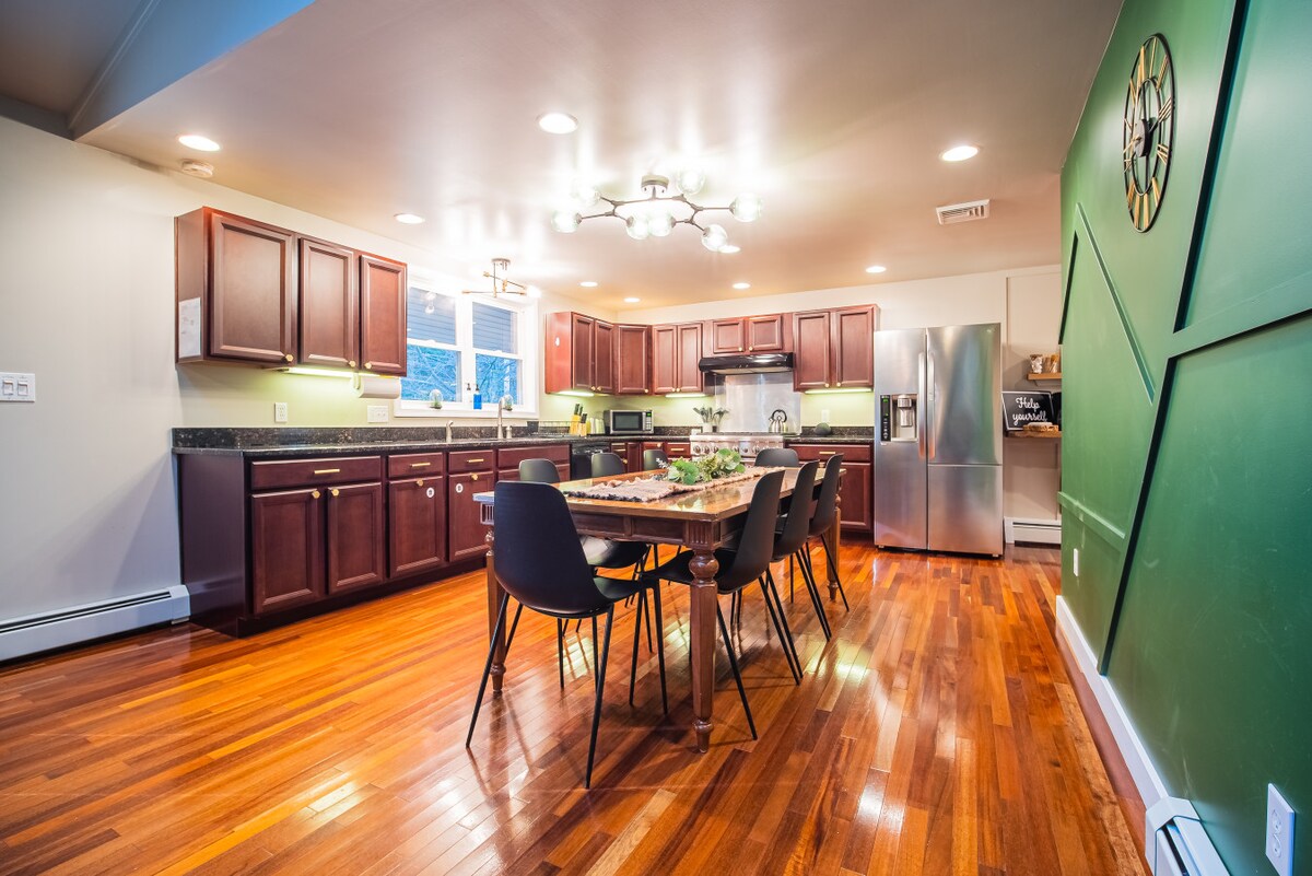Spacious 2000 sq ft layout for families: ➨ 1 King bed, 2 Queen beds, triple Twin-mattress bunk bed ➨ Fully stocked kitchen w/ coffee bar ➨ Game room w/ Air Hockey and Foosball ➨ Private hot tub, fire pit & BBQ grill ➨ Close to Lake Wallenpaupack & local attractions Prime Location: ➨ 5 miles to Lake Wallenpaupack ➨ 20 miles to Big Bear Ski Resort ➨ 15 miles to Claws N Paws Wild Animal Park ➨ 11 miles to PA Rail Bike Trail ➨ 6 miles to Costa's Family Fun Park ➨ 6 miles to Promise Land State Park