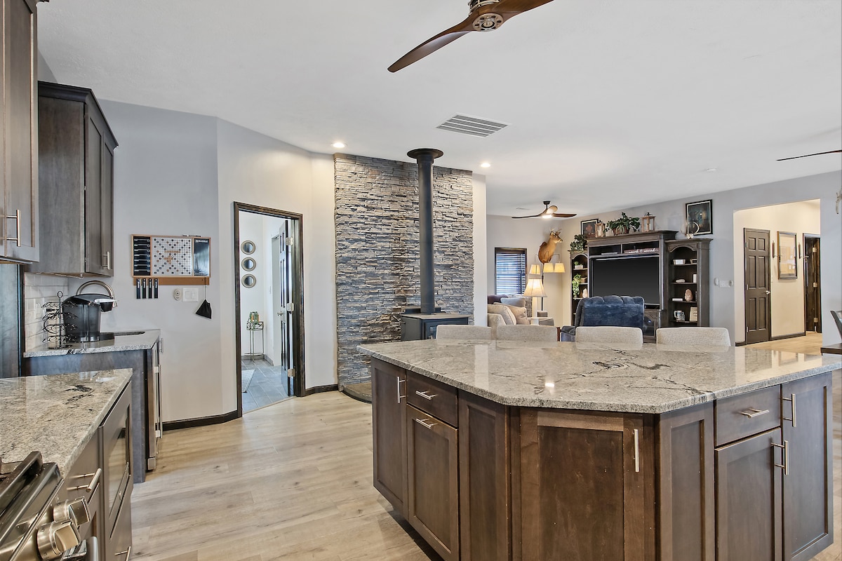 這間優質的房源空間寬敞,可以帶著全家老小一同入住。 這間2間臥室、1.5間浴室牧場有開放式佈局,廚房、用餐區和客廳都彼此開放。主臥室很大,配有新安裝的加大雙人床、辦公桌和舒適的椅子。 主浴室有淋浴間,有座椅,沒有浴缸。主浴室也可以從走廊進入。第二間臥室有2張雙人床。客廳的沙發也有一張拉出式床。