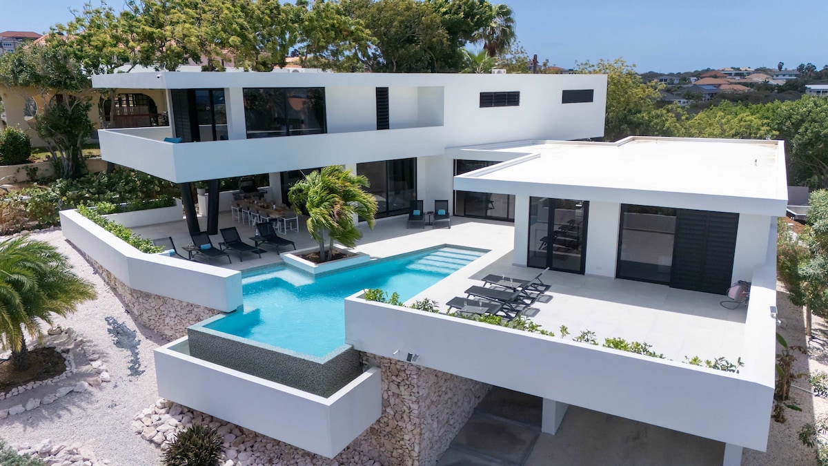 Escape to this stunning brand-new villa directly on an oceanfront cliff in Curacao's famous Blue Bay resort with panoramic views of the Caribbean Sea and an 18-hole golf course. With 3 luxury suites and your private infinity pool, this modern villa provides the pinnacle of comfort and style to enjoy a unique inside-outside luxury Caribbean experience. ✔ 3 Bedroom Suites ✔ Ocean Front ✔ Spectacular Views ✔ Private infinity pool ✔ BBQ ✔ Smart TV ✔ Fast Wi-Fi ✔ Full Kitchen See more below!