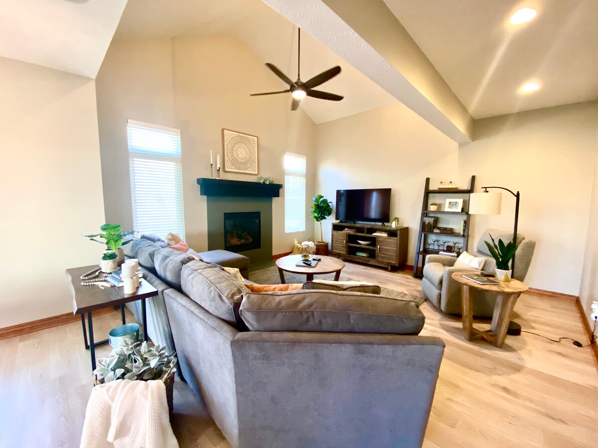 這間寬敞的2間臥室、2間浴室的閣樓,讓您逃離到美麗的堪薩斯州農村。 主臥室配有加大雙人床和套房浴室,配備淋浴間。 第二間臥室有一張雙雙人床,配有套房浴室和按摩浴缸。 配備齊全的現代廚房、酒吧和2個用餐區,使其成為與家人或朋友聚會的完美場所。 辦公桌和高速Wi-Fi讓您可以在閣樓舒適地工作。 室外區域設有露臺、露臺家具和有蓋停車位。