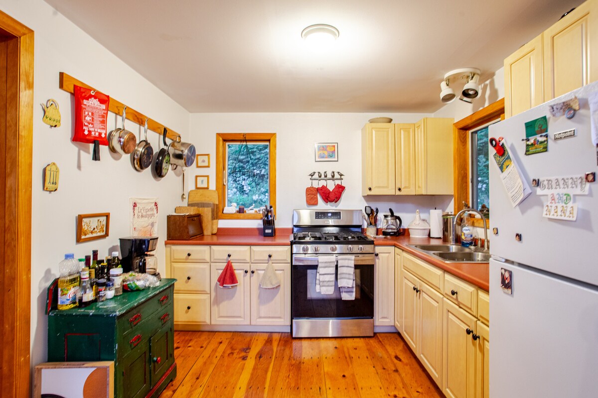 舒適的小木屋,靠近綠山國家森林旁的鱒魚溪。楓木地板、波斯地毯、壁爐和木柴爐。一間大客廳/餐廳/花崗岩檯面廚房/2間開放式睡眠閣樓,每間均配有雙人床,另有一張雙人拉式睡眠沙發。 新裝修的浴室/淋浴間/洗衣機/烘乾機。獨立的單間公寓工作空間,配有高速網路。小屋距離Mad River和Sugarbush滑雪區都只有很短的車程
