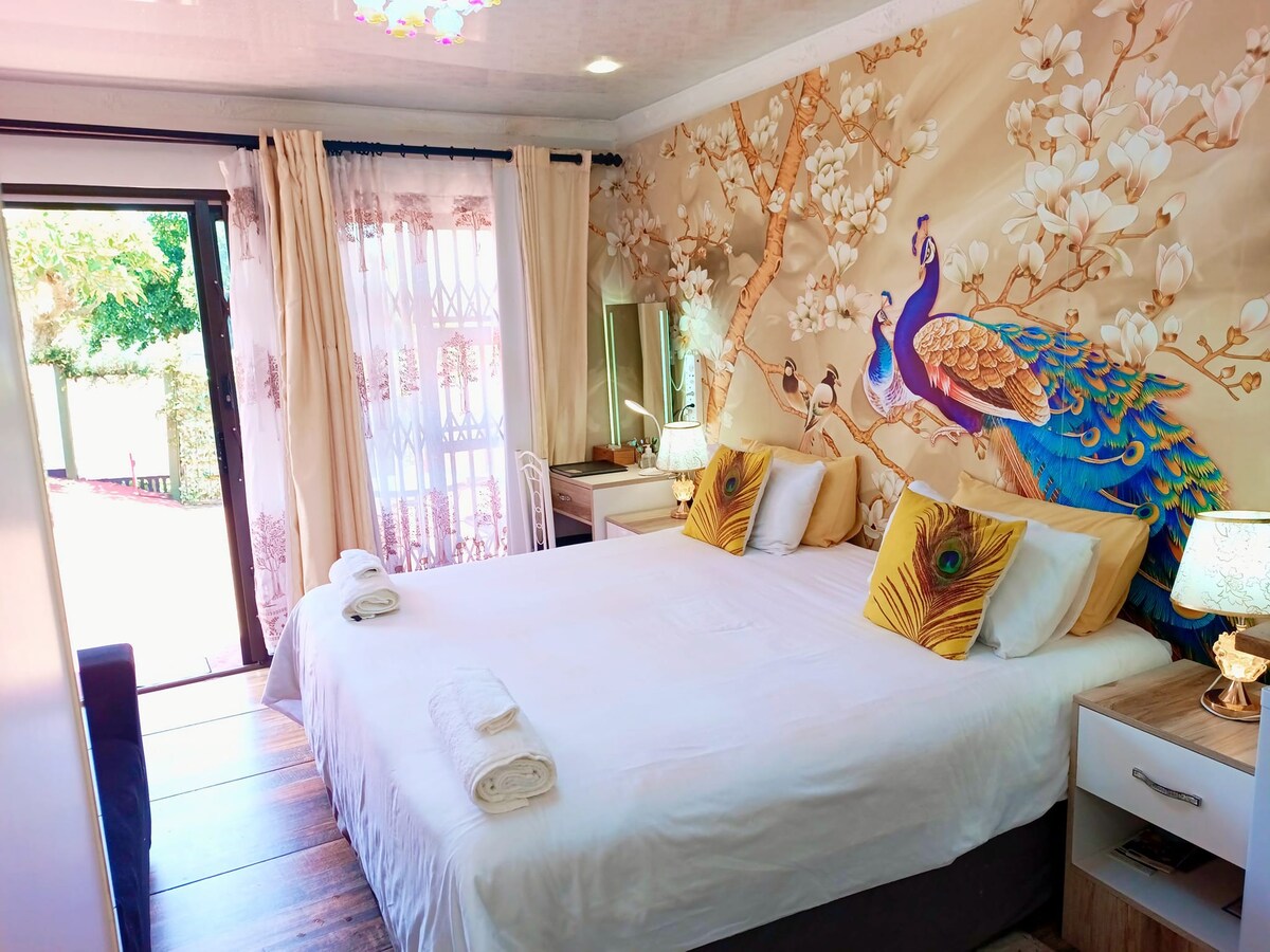 Queensburgh B&B or self catering offers 4 star luxury accommodation in Malvern Queensburgh, a quick 18km from Durban beaches, we are located very central with easy highway access. The Superior King Suite is a 2 sleeper, we can do a king bed or 2 single beds on request. This Suite offers a tv with Netflix and open view, dressing table , a fully equipped self catering kitchen and a bathroom with walk in shower with a luxury golden jet spray shower. and a veranda, pool and braai area.