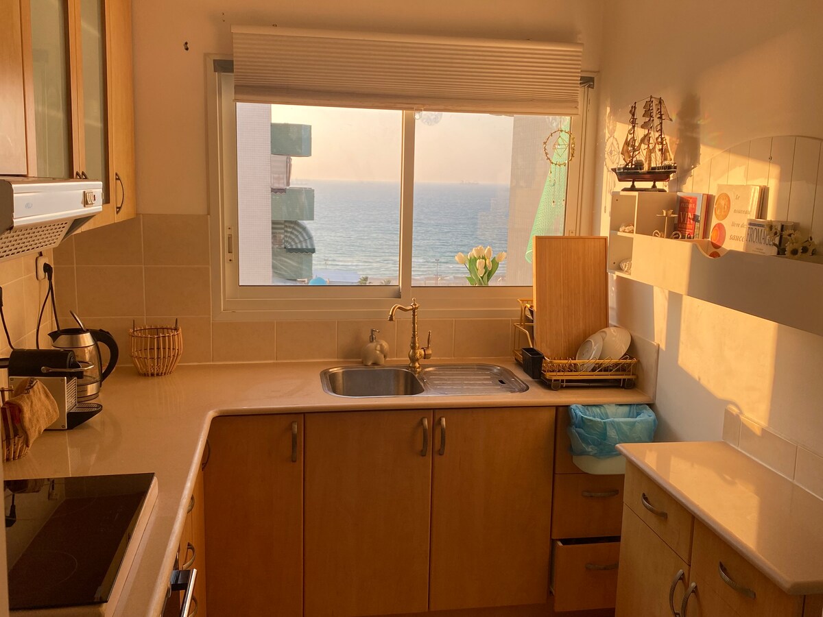 明亮寬敞的兩房公寓,海景壯觀,步行即可抵達海灘。 公寓位於阿什杜德(Ashdod)安靜的中心區域,配備齊全,包括一間帶用餐區的客廳、一間設備齊全的廚房、一間帶大衣櫃的雙人臥室、一間帶淋浴間的浴室和一台洗衣機。 提供高速WiFi、2台冷氣、2台電視和一切所需,讓您住得舒適愉快。 非常適合情侶或家庭短期度假,方便前往餐廳、咖啡廳和公共交通工具。